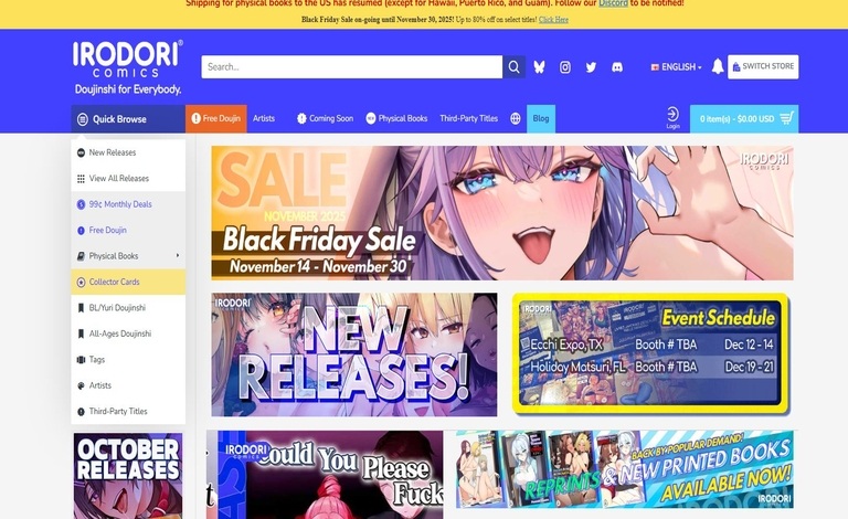 When I first visited the Irodori Comics website, the friendly bird logo was the last thing I expected to see on an adults-only site. If not for the warning, you might mistake it for a candy brand or a tech startup. Instead, it’s a full-scale online store dedicated to hentai and doujinshi.